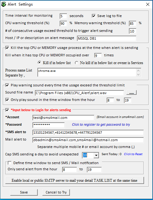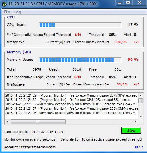 Get alerts when CPU/MEM usage keeps consecutive high than