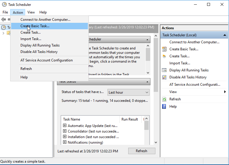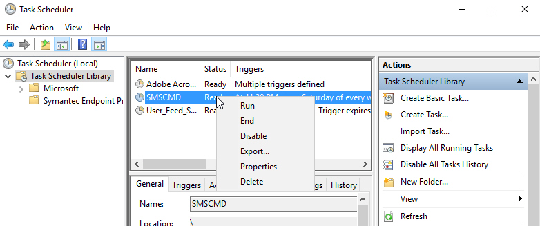 Steps to add SMSCMD task to Windows Task Scheduler : Type ¡°taskschd.msc¡± on the Run and press enter to open the Task Scheduler. |