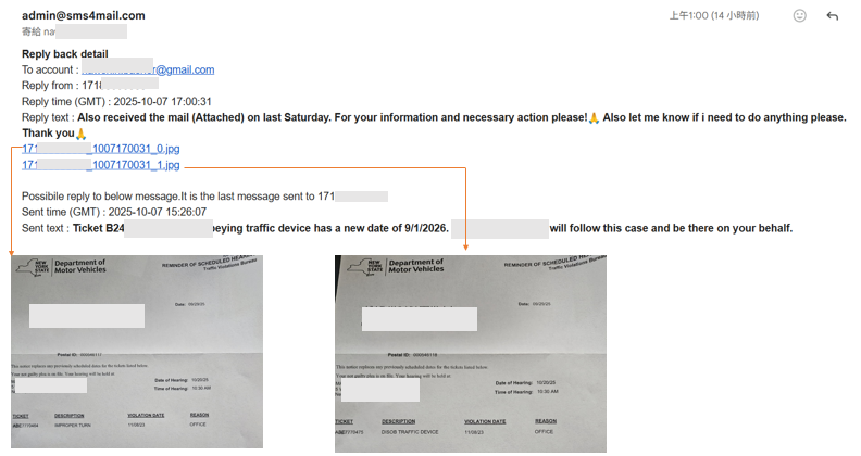 "7186791234,+447121027123" "registered@sms4mail.com"